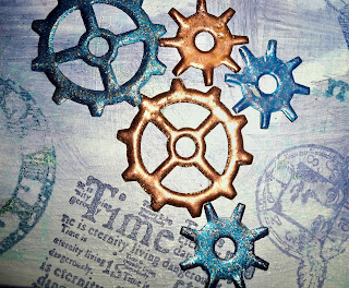 burn you! I embossed each gear with a different color embossing powder and they came out wonderful. I actually could of done a project with just these! (making a note of that idea <grin>)