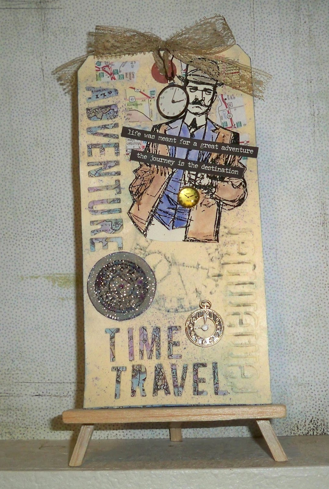 in my stash. I finished the tag off using some lace that I had colored