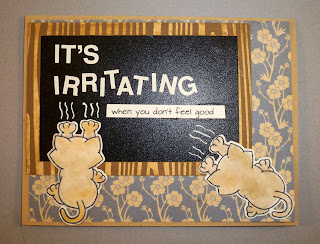 The best thing about this card, aside from the fact that it is a get well card is that I got to use something old (very. very old) and something brand new to me in making it. The white letter stickers have got to be at least 11 years old and as I said prior, the Naughty Newton set is new to me. I love when I can use up some old stash to make room for some new stuff. I started this card by