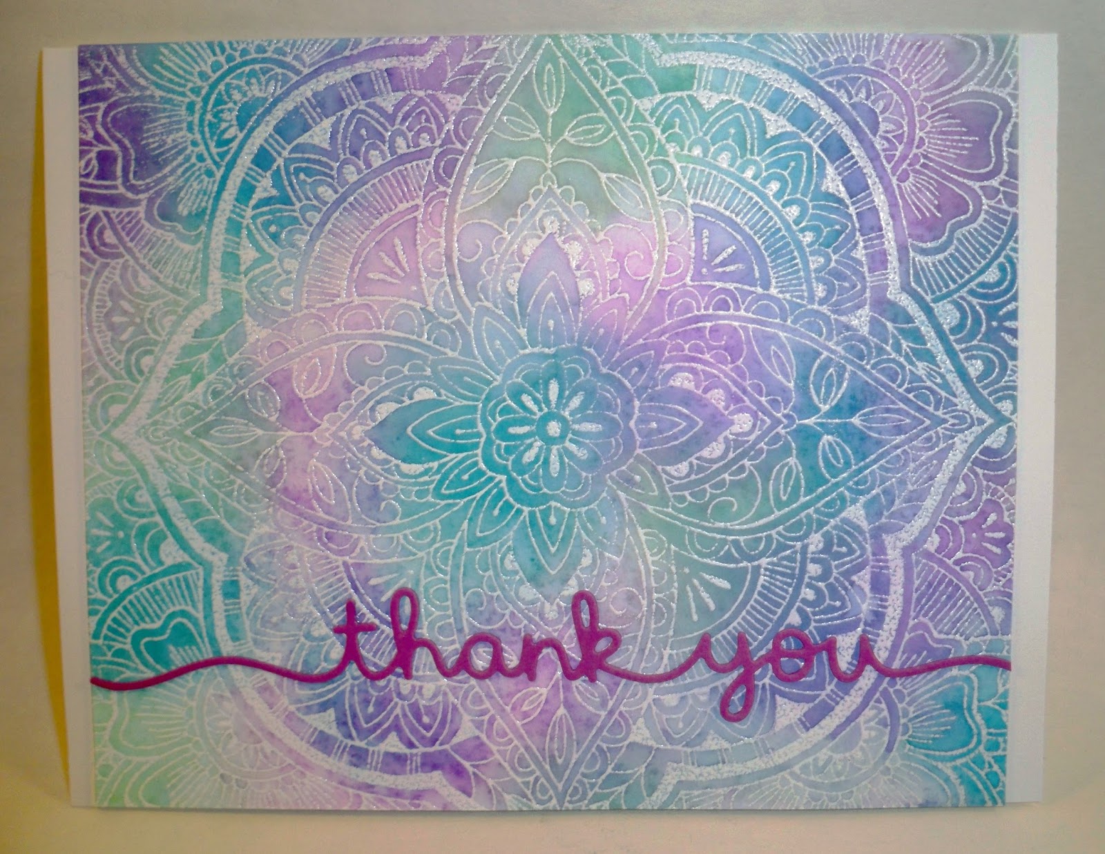 It's a shame you can't see the card in person. The colors are so pretty and so much brighter than the photos. Also, the "thank you" die cut is actually much more purple than pink, but I fiddled with the photos like crazy and I can't get the color to come out right, you'll have to trust me. I've got a couple more cards in the works using these inks and I can't wait to share them with you. Did you get the Oxide Inks? What do you think of them?