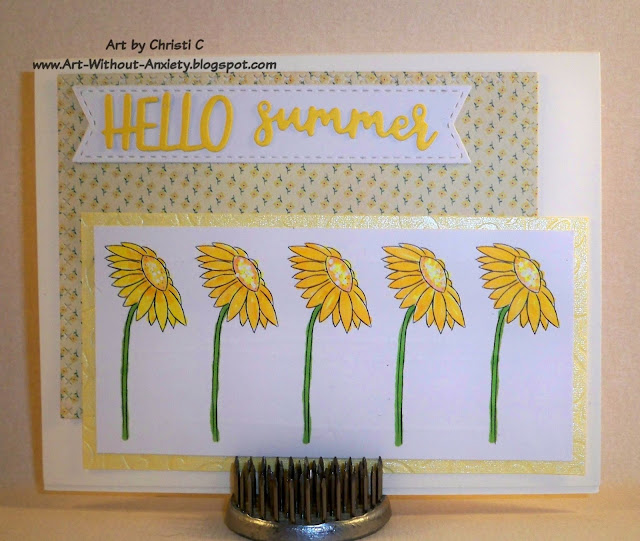 The lovely Arlene sent me this image {as she did for the image I used here} and I used the wonky stitched circle die to cut it out. I colored the image with alcohol ink markers. That was my mistake. I typically try to get all the supplies I need together before I put a project together {or I at least know in my head what I am going to use} and this time I colored the rose before I had anything else to go with it. The hunt begins for the perfect background paper with me first going through all my 6" x 6" pads, 8" x 8" pads, as well as any odd sized pads. Then I move on to my 12" x 12" papers. Well, I overlooked the Artisan pad that I finally used and it took me DAYS to figure out what else I could find to match this rose. I am so new at working with alcohol markers that I was afraid to try and blend any other shades of yellow in the flower {watercolor I can handle,