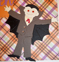 thought it would be - very typical of me to give something I've never done so much power and convince myself I'll never be able to do it {it's that little self depreciating voice we've discussed before.} I do so much better when I just jump in and try it than wait and get myself in a tizzy. Anyway, I made the Pivot Pop-Up and cut the letters to spell out Halloween. I attached the letters to the panels and cut the word Happy out of black card. Luckily, I left just enough room to put it at the side of Halloween {I had originally planned to put it elsewhere, but the Pivot wouldn't allow it.}