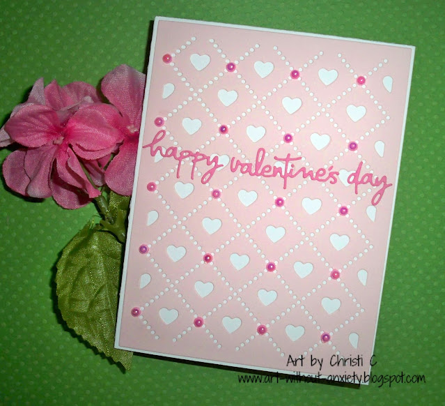 I just love Gina Marie Designs and I am so happy I found them! If you are a die lover like I am, this is one of the best places to go for new designs that are inexpensive. They do carry a limited number of other crafting products but to be honest I just looked at the dies. Anyway, I began this card by cutting out the Argyle background and adhering it to a white card base. Then I glued 1/2 pearls onto the design, four to a row. After I was sure they dried, I cut and glued on the sentiment. Easy card but as I said, I think it is beautifully striking! Thanks so much for stopping by! Fondly, Christi