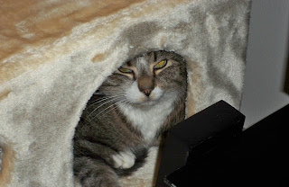 So Tom moved back to the East Coast and Lily became my cat and came with me. We all moved into a home that had 2 cats already, so now there are 8 crazy cats. I will post pictures of Emmy and Sasha when I get a moment. I am pleased that we have had no serious issues with all the cats, occasionally a growl or a bit of spitting, but they all get along just fine. In fact, Emmy seems to enjoy having all this company! Sasha isn't as thrilled, but she lays on the arm rest of the couch and swats at all the others as they walk by - considering she is so tiny (she is even smaller than Junior, but she has long fur so she looks bigger) it's funny to see Sylvester or Max get a swat and jump 40 feet in the air :)
