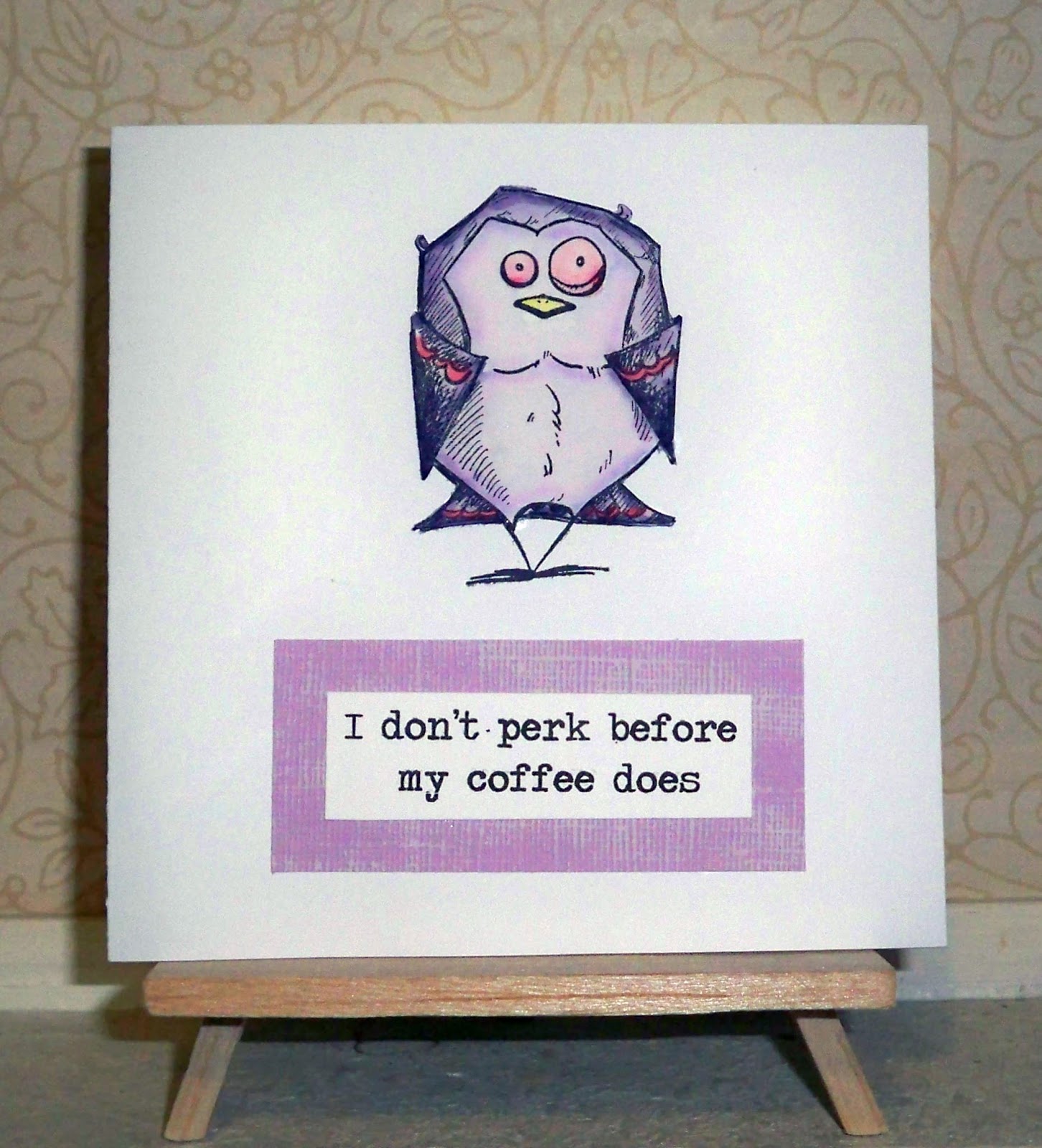 While the cups were drying, I stamped my sentiment onto some white card and cut the word 'coffee' from some dark brown card. I used a stitched oval die to cut out the sentiment, making sure it was at the bottom of the oval. I attached the oval to the kraft card base, then glued the word 'coffee' to the top of the oval.