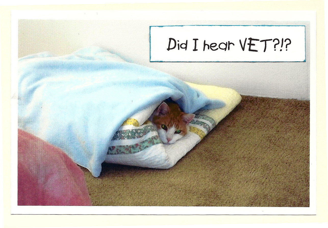 vet visits with her there was a sign up about a cat the vet had. The cat was 3 months old and orange and white