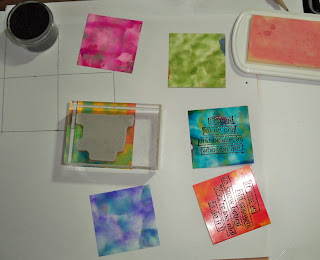 thingie, stamped each square with a sentiment with the embossing ink, sprinkled