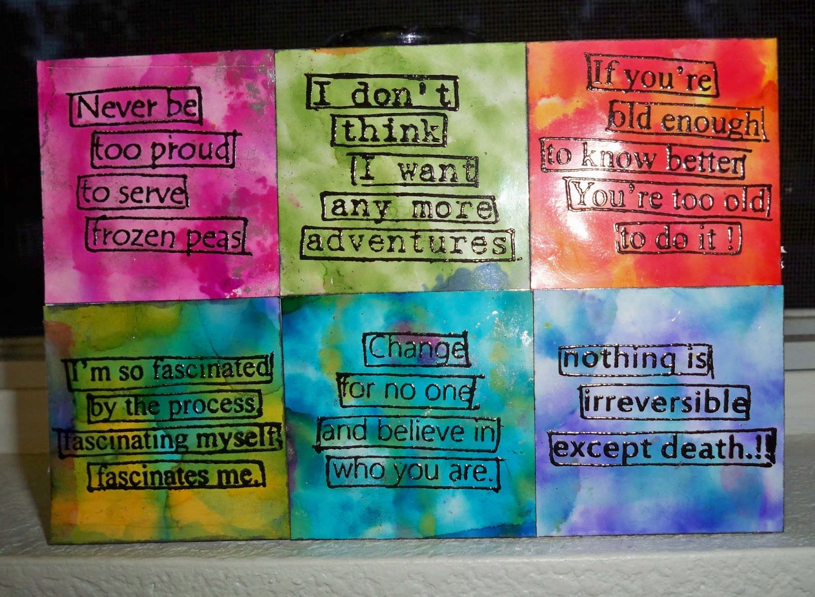 colors because I wanted to be able to see embossed sayings. I finally ended up with six squares that I
